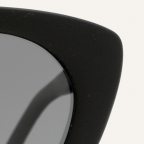 Rounded frames for a modern-day breakfast at Tiffany’s. Handcrafted from coffee by-products, these frames feature a sleek black front and flax-covered temples, offering a unique, tactile connection to nature.